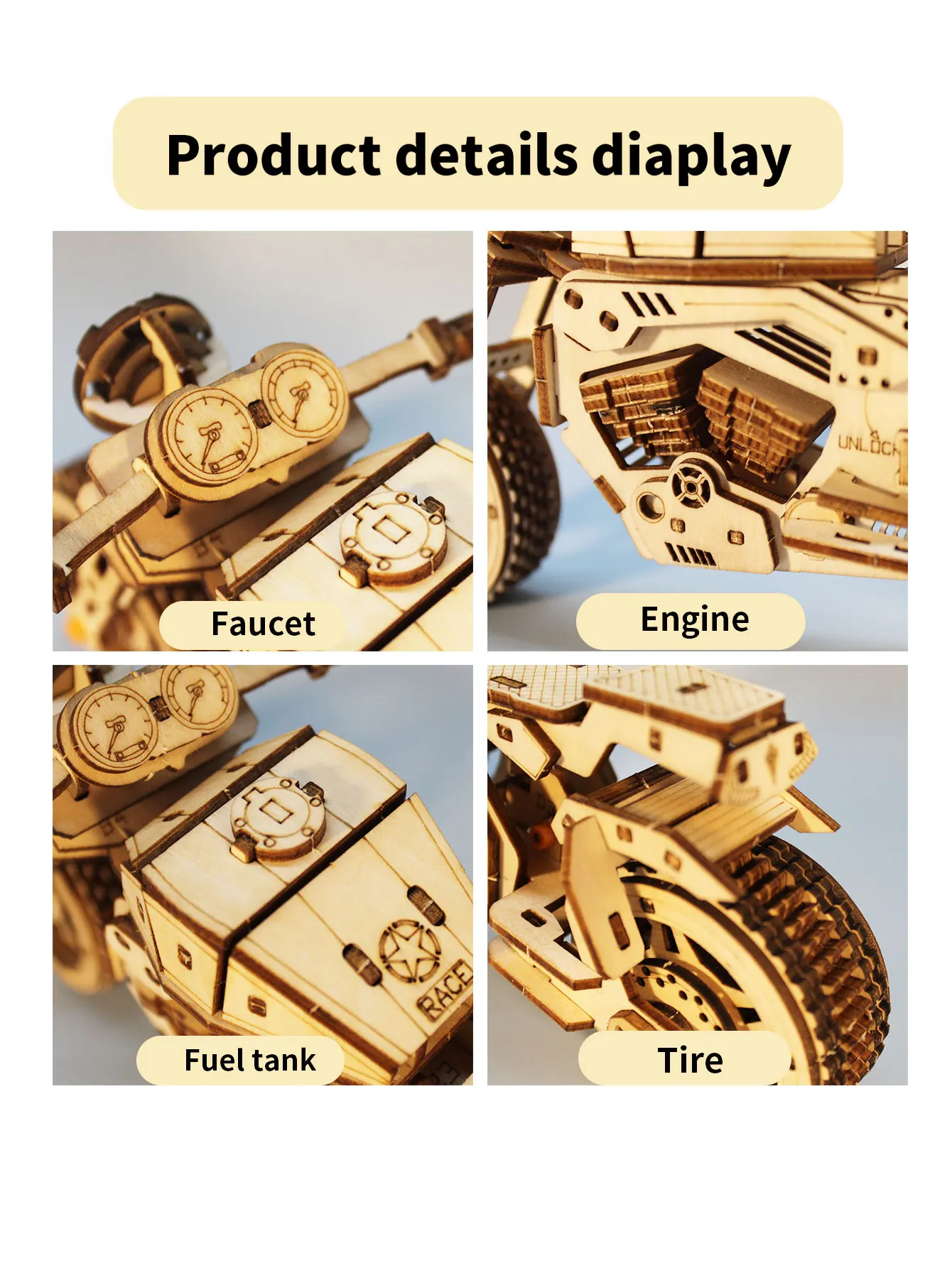 3D Wooden Puzzle Motorcycle Model Kits To Build Wooden Construction Handmade Craft Unique Gift Christmas