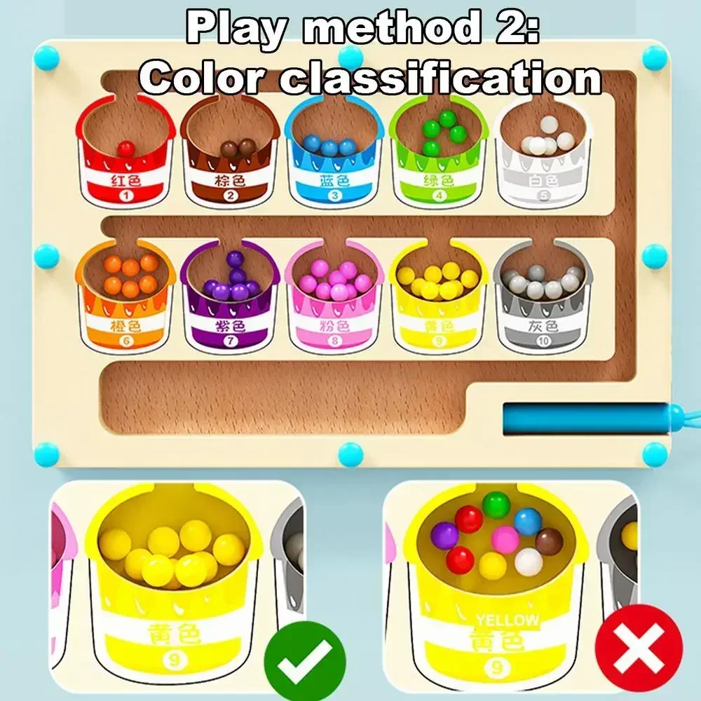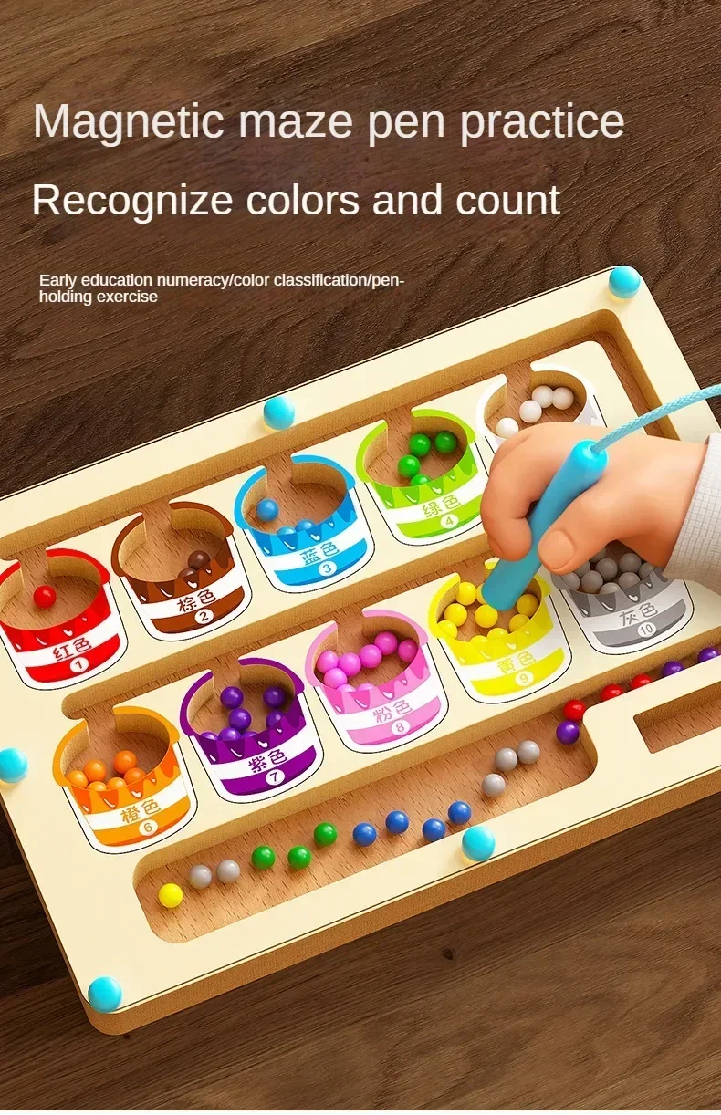 Early Education Puzzle Board Magnetic Maze Board Color Sorting Game Counting Toy Wooden Magnet Puzzles Educational Toys